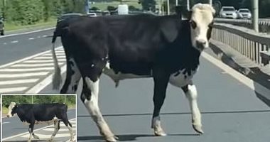 تسببت بقرة في حدوث فوضى مرورية بعد تجولها على طريق سريع رئيسي في إنجلترا – مما أجبر السائقين على الالتفاف حوله، وفقا لموقع “ديلى ميل” البريطاني.شوهدت البقرة الفريزيان الصغيرة وهي تهرول في مسار المركبات القادمة على الطريق M55 المزدحم ، بين بريستون وكيركهام ، لانكشاير، يوم الخميس.