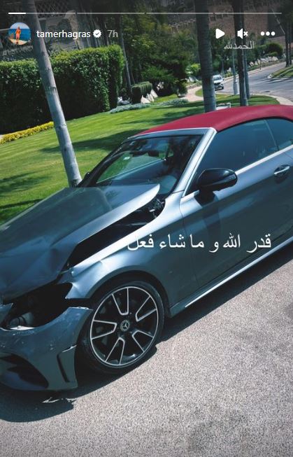 تامر هجرس يتعرض لحادث سير وتهشم جزء من سيارته