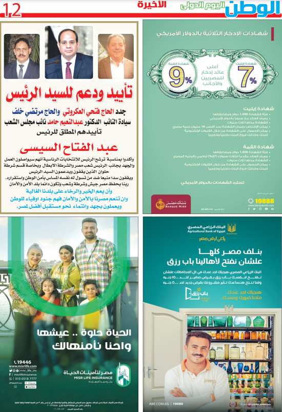 يقدم موقع جريدة الوطن اليوم الدولي هذا العدد المتنوع الذى يضم اهم الاخبار 11 نوفمبر، 2023 فيسبوك X واتساب مشاركة عبر البريد طباعة بقلـم : الدكتورة الاعلاميـة حنـان الجنيـدى مقالات ذات صلة رئيس الشيوخ يشيد بدعم كوت ديفوار لمصر فى رفض التهجير القسرى للفلسطينيين 19 فبراير، 2024 اقتصادية النواب توافق مبدئيا على مشروع قانون الوكالة المصرية لضمان الصادرات 15 أكتوبر، 2023 أطفال مصر من نقابة الصحفيين: أوقفوا الإبادة الجماعية فى غزة 11 نوفمبر، 2023 11 نوفمبر، 2023 فيسبوك X واتساب مشاركة عبر البريد طباعة اظهر المزيد فيسبوك X واتساب مشاركة عبر البريد طباعة