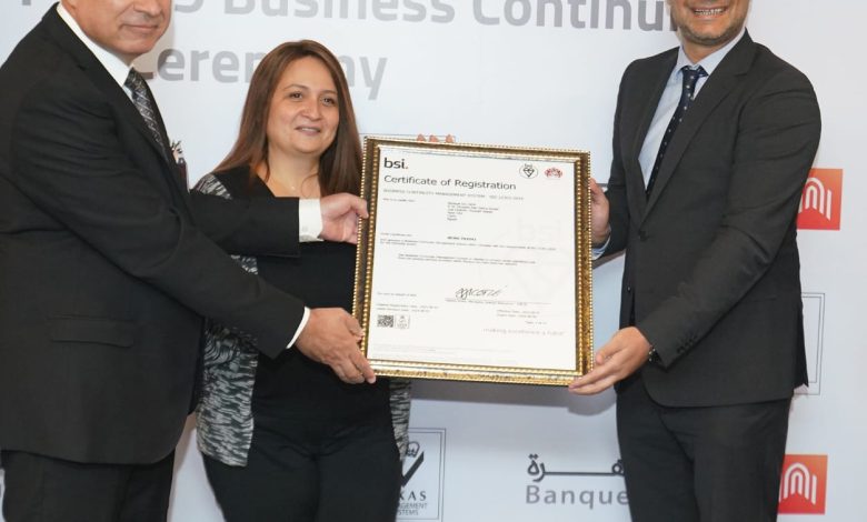 بنك القاهرة يحصل على شهادة الأيزو 22301 لنظام استمرارية الأعمال