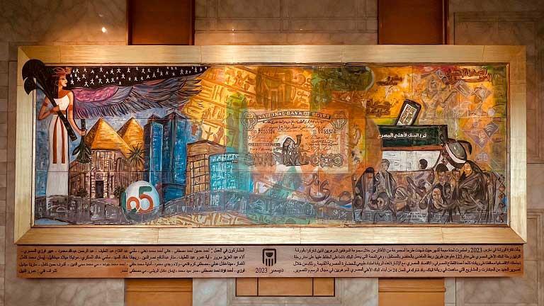 وأضاف عكاشة أن هذا يضيف لرصيد البنك من المقتنيات الفنية لتضم “جدارية 125 عام من الريادة ” والتي تم رسمها وتجميعها من خلال العاملين الموهوبين بالبنك مما يعكس ولائهم له، حيث استمر العمل فيها لمدة سبعة أشهر لتوثيق رحلة البنك الأهلي المصري على مدار 125 عاما عن طريق ربط الماضي والحاضر بالمستقبل لتشكل تحفة فنية تورث للأجيال القادمة، وهي السمة التي تحافظ دائما على ريادة البنك الأهلي المصري كأحد أعمدة القطاع المصرفي والاقتصاد المصري.