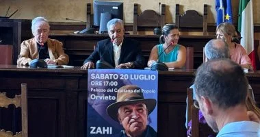 عُقد اليوم الأربعاء، مؤتمر صحفي عالمي في مدينة أورفييتو الإيطالية، لعالم الآثار المصرية الدكتور زاهي حواس بمقر مكتب عمدة المدينة، وذلك تهميدا للمحاضرة التي ستقام يوم السبت القادم.