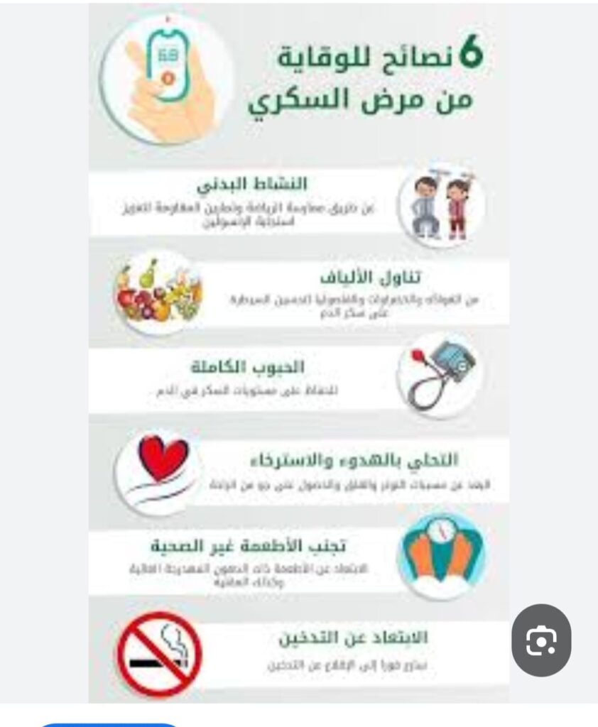 إشراقه طبيه وهى بعنوان نصائح عن مرض السكر . ♦️لو عندك سكر، لازم تعرف شوية حاجات مهمة عشان تحافظ على صحتك وتتحكم في مستوى السكر عندك.
