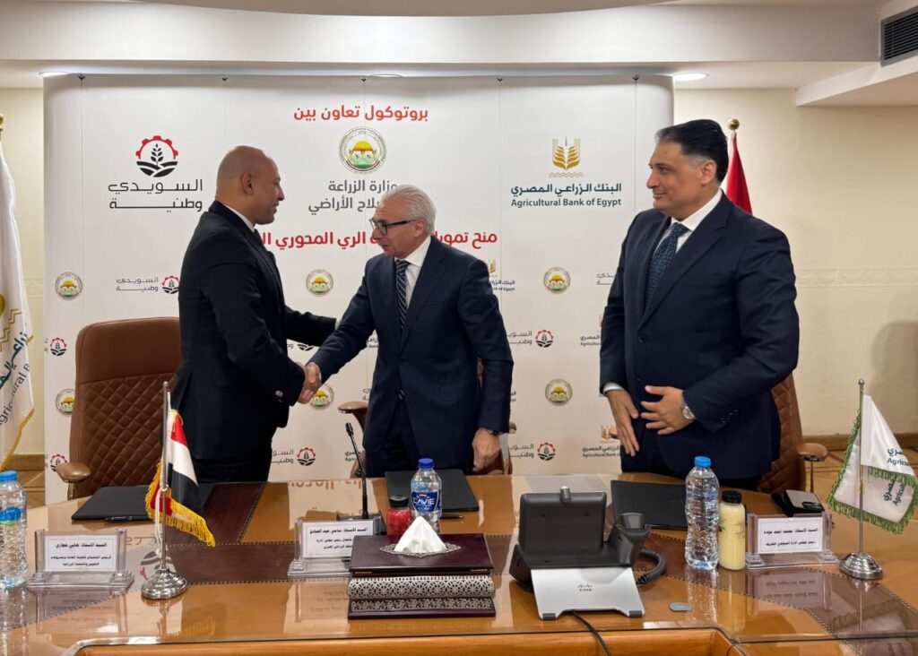 تحفيزاً للإستثمار في القطاع الزراعي والتوسع في استخدام أساليب الري الحديث، وتعزيزاً لدور القطاع الخاص في توطين الصناعات الوطنية الداعمة للقطاع الزراعي، وقع البنك الزراعي المصري بروتوكول تعاون مع شركة السويدي الوطنية للصناعات والمشروعات الهندسية برعاية وزارة الزراعة واستصلاح الأراضي، بهدف توفير التمويل اللازم للمزارعين والشركات العاملة في مجال استصلاح الأراضي والمشروعات الزراعية لشراء أنظمة الري الحديثة التي تنتجها الشركة، والتي تعد أول شركة مصرية تقوم بتصنيع أجهزة الري المحوري الذكي (دلتا بيفوت).