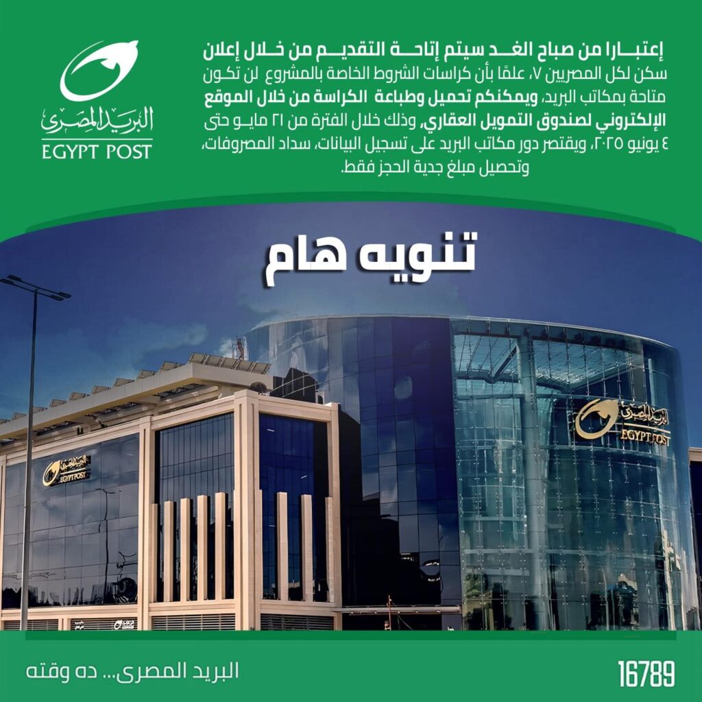 علمًا بأن كراسات الشروط الخاصة بالمشروع لن تكون متاحة بمكاتب البريد.