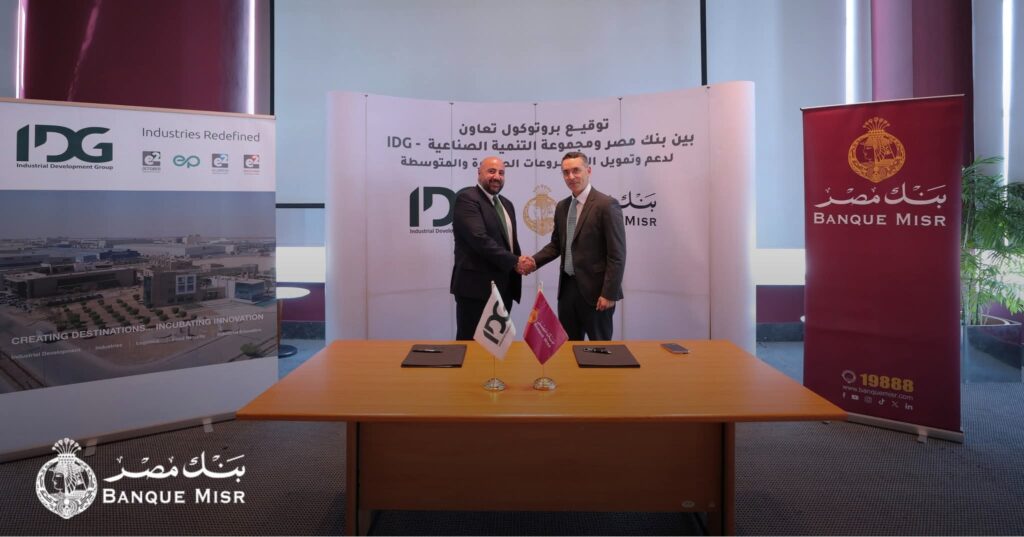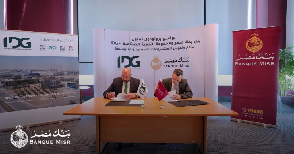 انطلاقاً من دور بنك مصر الرائد في مجال تمويل المشروعات المتوسطة والصغيرة والمتناهية الصغر باعتبارها قاطرة النمو الاقتصادي المصري وركيزته، و دور مجموعة التنمية الصناعية (IDG) باعتبارها من أكبر المطورين للمناطق الصناعية و مجمعات المصانع سابقة التجهيز ،قام بنك مصر بتوقيع بروتوكول تعاون مع مجموعة التنمية الصناعية (IDG) بهدف دعم القطاع الصناعي من خلال تقديم تسهيلات تمويلية للشركات الصغيرة والمتوسطة ومتناهية الصغر لدعمهم على التوسع والنمو ،و قد قام بتوقيع البروتوكول السيد/ شادي ويليام – الرئيس التنفيذي لمجموعة التنمية الصناعية، مع السيد/ عمرو دمرداش – رئيس قطاع المشروعات الصغيرة والمتوسطة والتمويل المتناهي الصغر ببنك مصر، وذلك يوم الخميس الموافق 19 يونيو 2025، بحضور لفيف مميز من قيادات بنك مصرو مجموعة التنمية الصناعية (IDG).