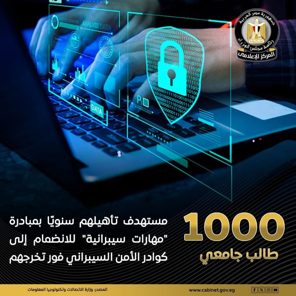 في إطار حرص الدولة على حماية أمنها السيبراني، تم اعتماد استراتيجيات وسياسات لتأمين البنى التحتية للاتصالات، وإعداد الكوادر اللازمة لمواجهة التحديات والمخاطر السيبرانية، من خلال تنفيذ برامج تدريبية متخصصة للطلاب والخريجين، أحدثها مبادرة “مهارات سيبرانية” التى تستهدف تأهيل 1000 طالب جامعى سنويًا.