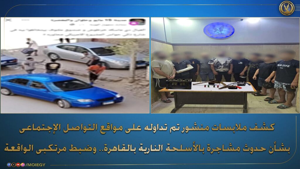 كشف ملابسات منشور تم تداوله على مواقع التواصل الإجتماعى تضمن حدوث مشاجرة بين مجموعة من الأشخاص بإستخدام أسلحة نارية بدائرة قسم شرطة حلوان بالقاهرة.