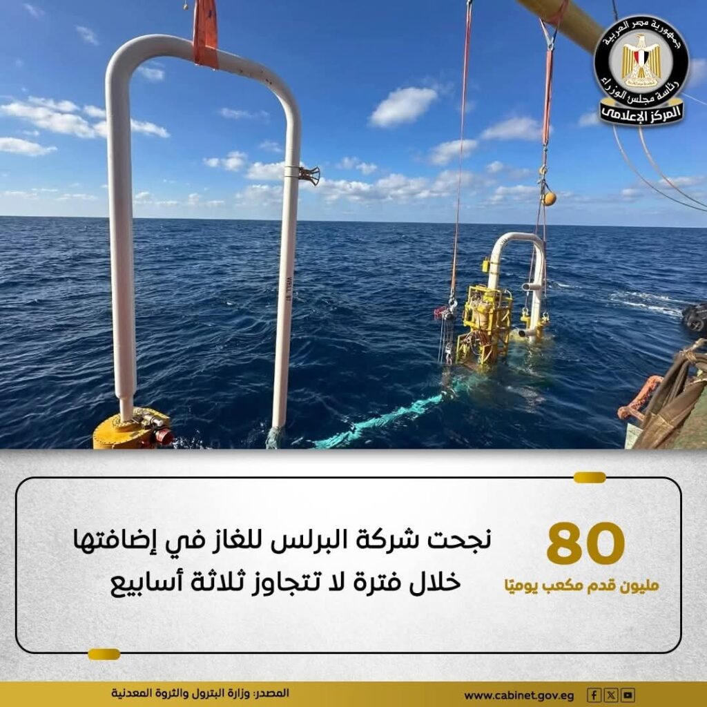 نجحت شركة البرلس للغاز في إضافتها محققة إضافة ٨٠ مليون مكعب قدم يوميًا من الغاز خلال ثلاثة أسابيع.