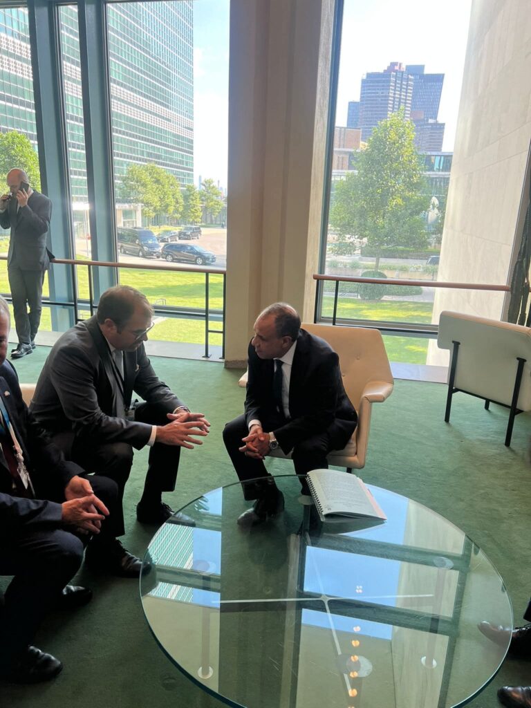 التقى د. بدر عبد العاطى وزير الخارجية والهجرة مع السيد “فلوريان هان”، وزير الدولة بوزارة الخارجية الألمانية على هامش أعمال المؤتمر الدولي رفيع المستوى للتسوية السلمية لقضية فلسطين وتنفيذ حل الدولتين، بمقر الأمم المتحدة في نيويورك.