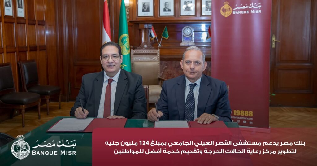 بنك مصر يدعم مستشفى القصر العيني الجامعي بمبلغ 124 مليون جنيه لتطوير مركز رعاية الحالات الحرجة وتقديم خدمة أفضل للمواطنين.