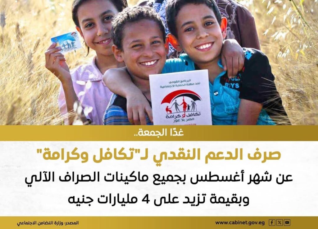 يحقق برنامج “تكافل وكرامة” جانبًا مهمًا من دعم الدولة للحقوق الاجتماعية والاقتصادية، ويقدم مساعدات نقدية مشروطة وغير مشروطة للأسر والأفراد الأولى بالرعاية.