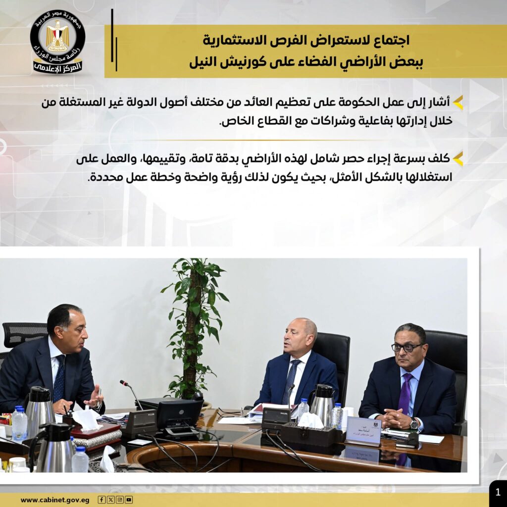– الحكومة تستهدف تعظيم العائد من مختلف أصول الدولة غير المستغلة عبر إدارتها بفاعلية وشراكات مع القطاع الخاص
