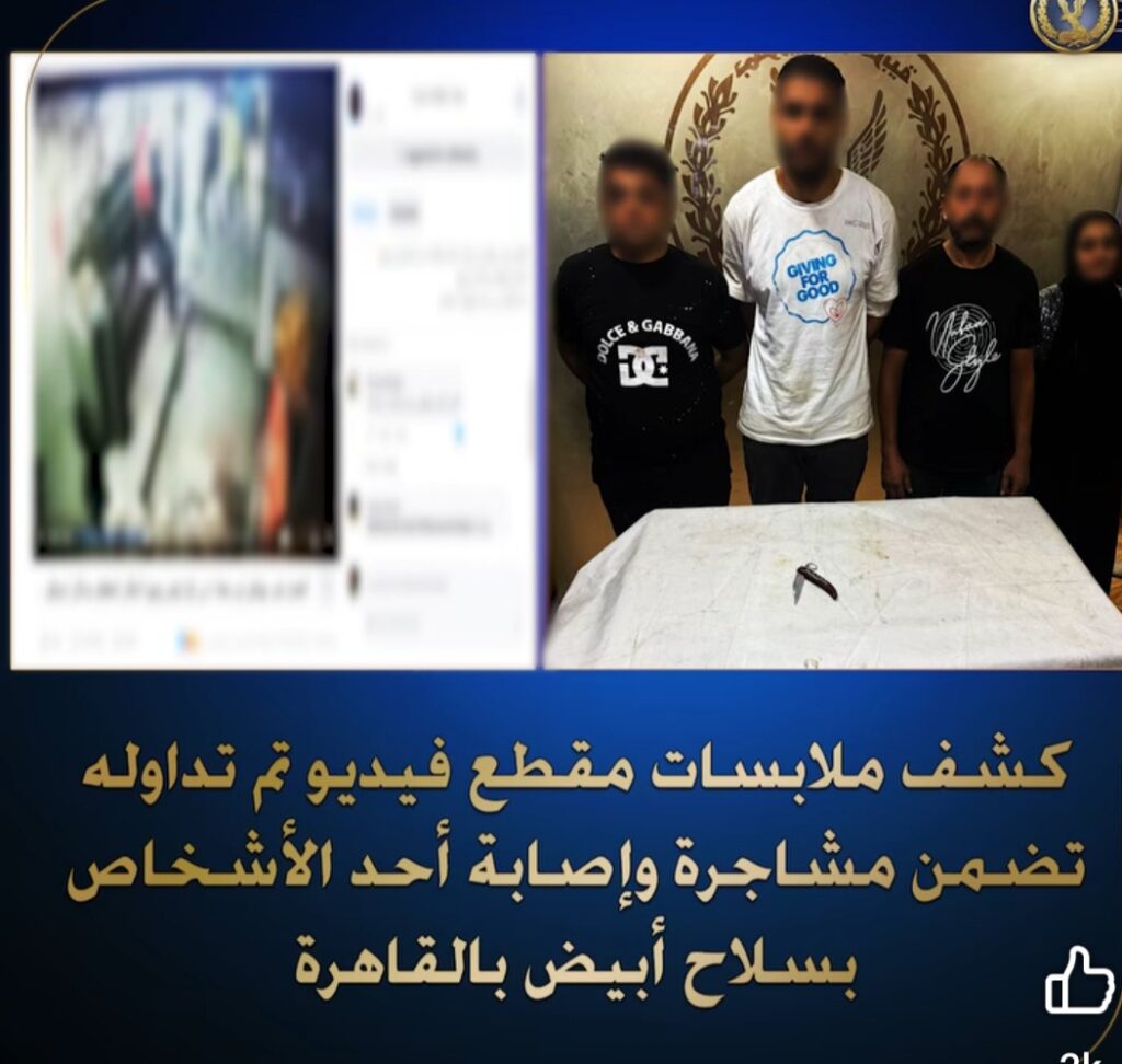 كشف ملابسات مقطع فيديو تم تداوله بمواقع التواصل الإجتماعى تضمن مشاجرة وإصابة أحد الأشخاص بسلاح أبيض بالقاهرة.
