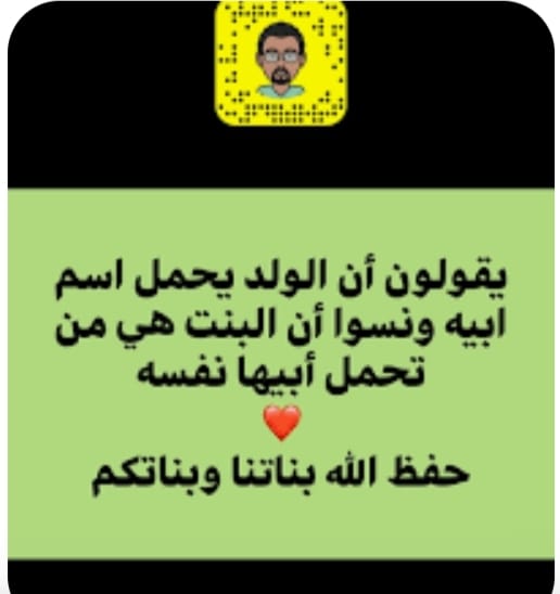 الابن يحمل اسم أبيه والبنت تحمل ابيها نفسه .