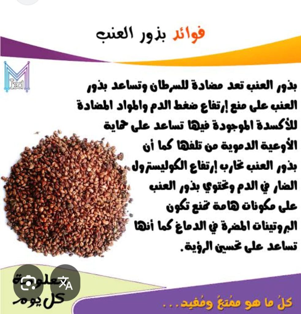 و مستخلصات بذور العنب قد يمنع نمو سرطان الثدي والمعدة والقولون والبروستاته .