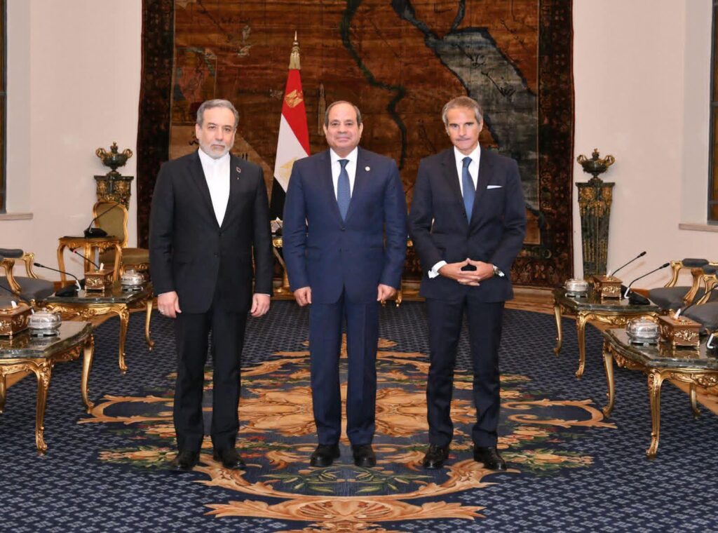 وذكر المتحدث الرسمي أنه عقب اللقائين المنفصلين، عقد السيد الرئيس عبد الفتاح السيسي لقاءً ثلاثياً مع السيد وزير الخارجية الإيراني، والسيد مدير عام الوكالة الدولية للطاقة الذرية، حيث رحّب السيد الرئيس بالزيارة المشتركة لوزير الخارجية الإيراني ومدير عام الوكالة إلى القاهرة، التي تأتي تتويجاً للمسار التفاوضي الذي انطلق في أغسطس ٢٠٢٥ بوساطة مصرية، بهدف استعادة التعاون بين إيران والوكالة رغم التحديات التي فرضتها الحرب الإسرائيلية – الإيرانية. وقد أشاد السيد الرئيس في هذا الصدد باتفاق استئناف التعاون الذي تم التوصل إليه اليوم بالقاهرة بوساطة مصرية، باعتباره خطوة إيجابية نحو خفض التصعيد، من شأنها إقناع الأطراف المعنية بالتراجع عن أي خطوات تصعيدية، وإفساح المجال أمام الدبلوماسية والحوار، تمهيداً للعودة إلى طاولة المفاوضات والتوصل إلى تسوية سلمية للبرنامج النووي الإيراني.وشدد السيد الرئيس على ضرورة تنفيذ الاتفاق واستئناف التعاون بين ايران والوكالة، وإجراء كافة الاتصالات اللازمة مع كل الاطراف المعنية لاستئناف مسار المفاوضات. ومن جانبهما، أعرب الضيفان مجددا عن تقديرهما البالغ لرعاية السيد الرئيس لعملية التوقيع على الاتفاق في القاهرة بين ايران والوكالة وقيادة سيادته الحكيمة في التوصل إلى الاتفاق، مؤكدين أهمية الدور المصري في تهيئة المجال للحوار وخفض التوترات، وتجنب التصعيد ودورها الريادي في التوصل إلى السلام في المنطقة.