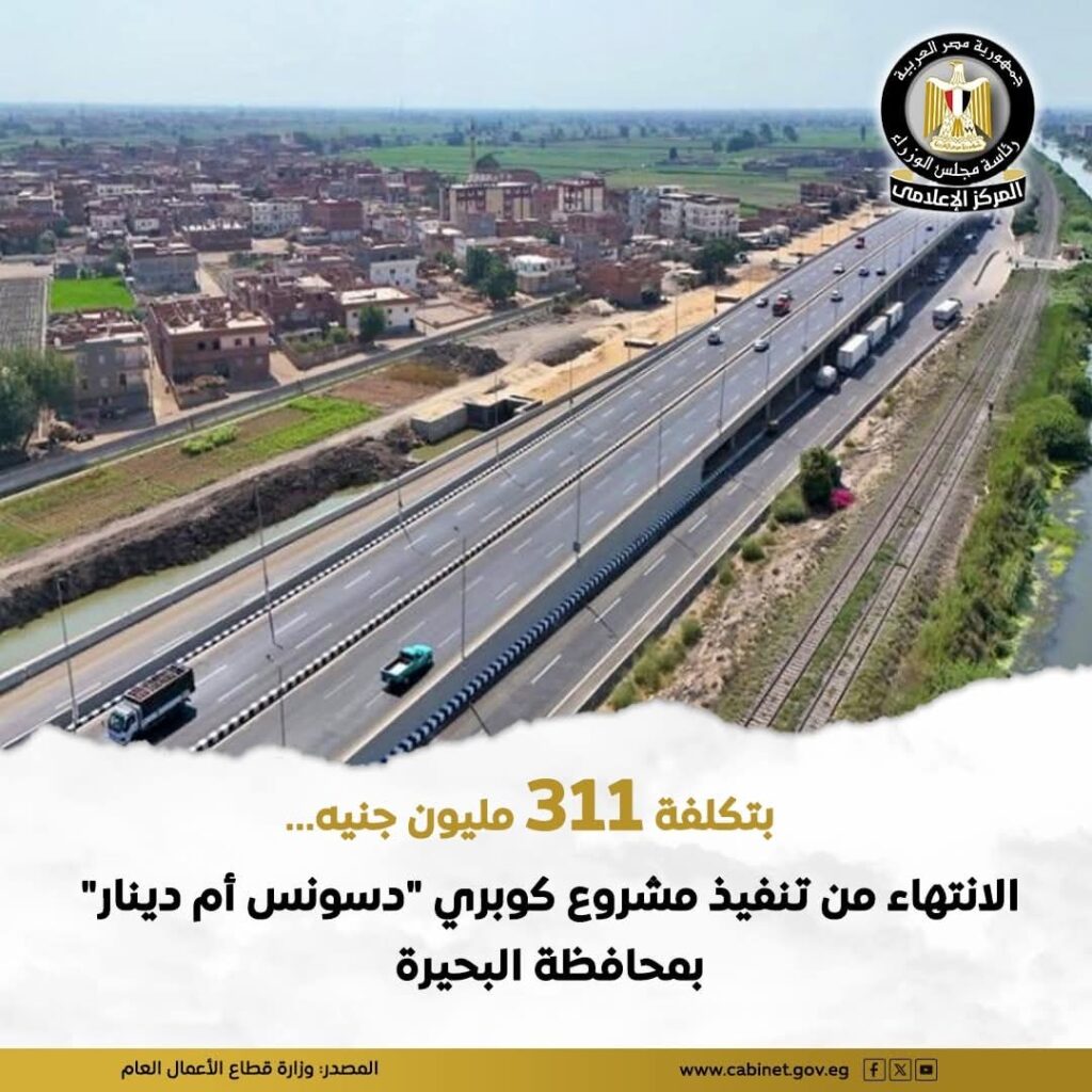 ويهدف المشروع إلى رفع كفاءة الطريق الزراعي وتحسين انسياب الحركة عند مدخل قرية دسونس أم دينار، فضلًا عن تعزيز مستويات الأمان والسلامة، وتقليل الاختناقات والتقاطعات المرورية على هذا الطريق الحيوي.