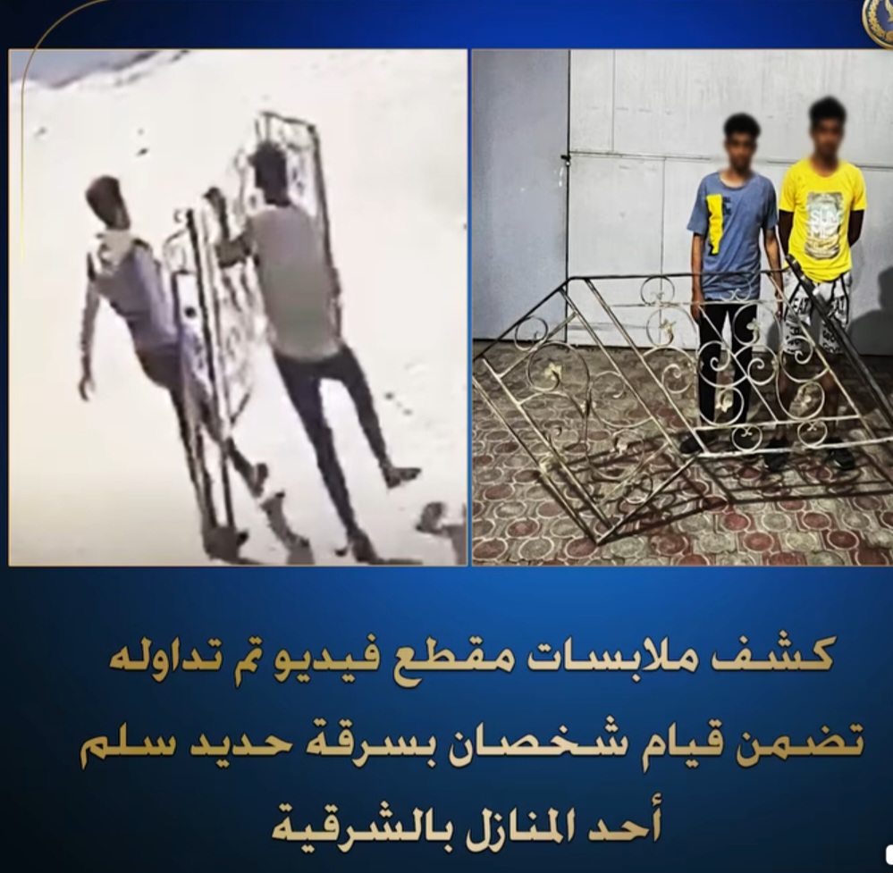 كشفت الأجهزة الأمنية بوزارة الداخلية ملابسات مقطع فيديو متداول عبر مواقع التواصل الاجتماعي، يظهر فيه شخصان أثناء قيامهما بسرقة حديد سلم أحد المنازل بمحافظة الشرقية.