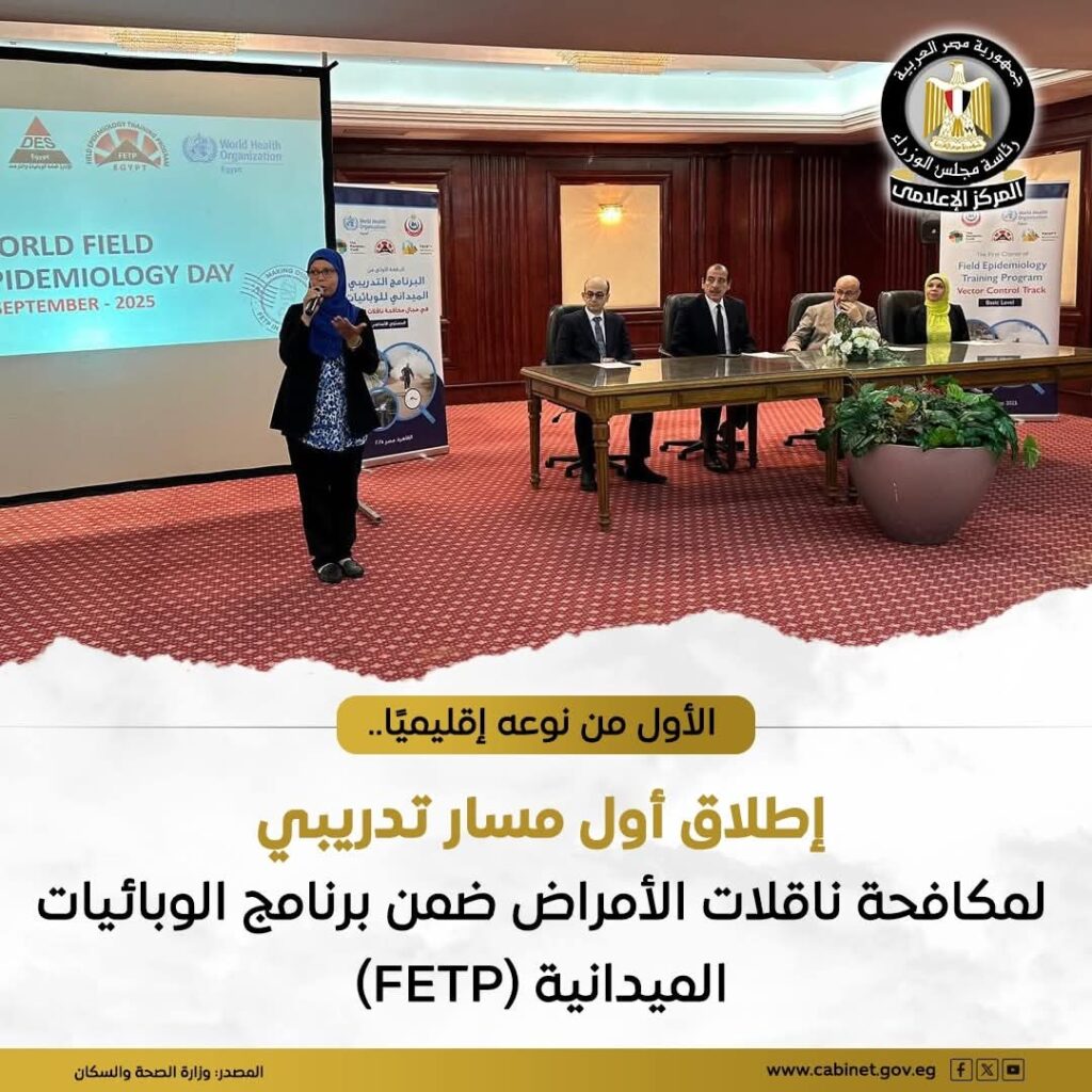 أطلقت وزارة الصحة والسكان، بالتعاون مع منظمة الصحة العالمية في مصر وشبكة الصحة العامة بإقليم شرق المتوسط (EMPHNET)، أول مسار تدريبي إقليمي من نوعه في مجال الوقاية والاستجابة للأمراض المنقولة بالنواقل، بما يعزز ريادة مصر الإقليمية في مجال الصحة العامة.