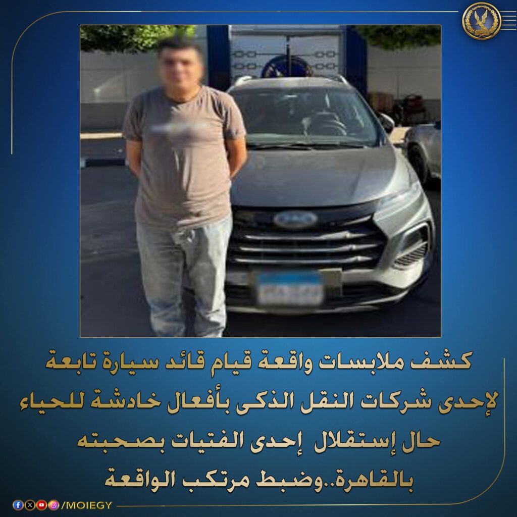 في إطار جهود وزارة الداخلية لكشف ملابسات ما يُبلّغ به من وقائع تمس الأمن الاجتماعي، تلقى قسم شرطة النزهة بمديرية أمن القاهرة بلاغًا من طالبة مقيمة بدائرة القسم بتضررها من قائد سيارة تابعة لإحدى شركات النقل الذكي لقيامه بأفعال خادشة للحياء أثناء استقلالها السيارة صحبته بدائرة القسم.