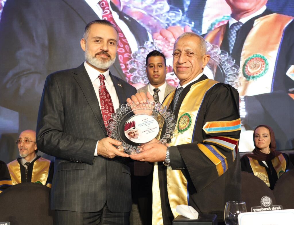 وفي لفتة تقديرية، كرّم رئيس الأكاديمية العربية للعلوم والتكنولوجيا، سعادة السفير طارق الأنصاري، تقديرًا لدعمه المستمر لمسيرة التعاون الأكاديمي العربي، ولدوره في تعزيز العلاقات الثنائية بين جمهورية مصر العربية ودولة قطر، وجهوده في دعم العمل العربي المشترك داخل جامعة الدول العربية.