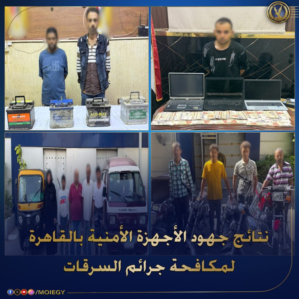 في إطار جهود وزارة الداخلية لمكافحة الجريمة وضبط العناصر الإجرامية المتورطة في جرائم السرقات بمختلف صورها، تمكنت الأجهزة الأمنية بمديرية أمن القاهرة من تحقيق عدة ضربات أمنية ناجحة أسفرت عن ضبط عدد من المتهمين والمتورطين في قضايا متنوعة.
