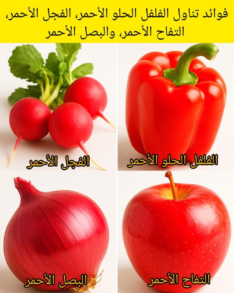 تناول الفلفل الحلو الأحمر، الفجل الأحمر، التفاح الأحمر، والبصل الأحمر.