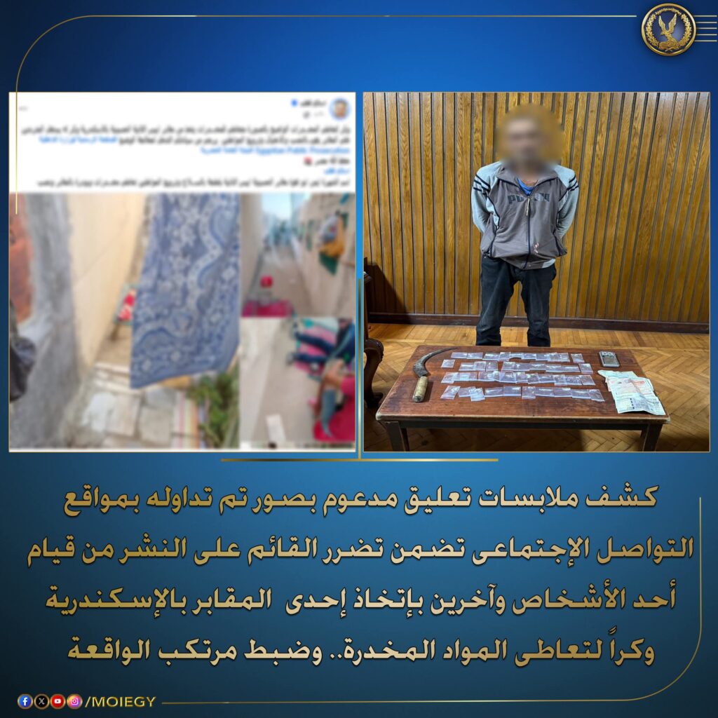 وكانت أجهزة الأمن قد رصدت منشورًا مدعومًا بصور متداولًا على مواقع التواصل الاجتماعي، يتضمن تضرر أحد المواطنين من قيام عدد من الأشخاص بالإقامة داخل المقابر وتعاطي المواد المخدرة بها.