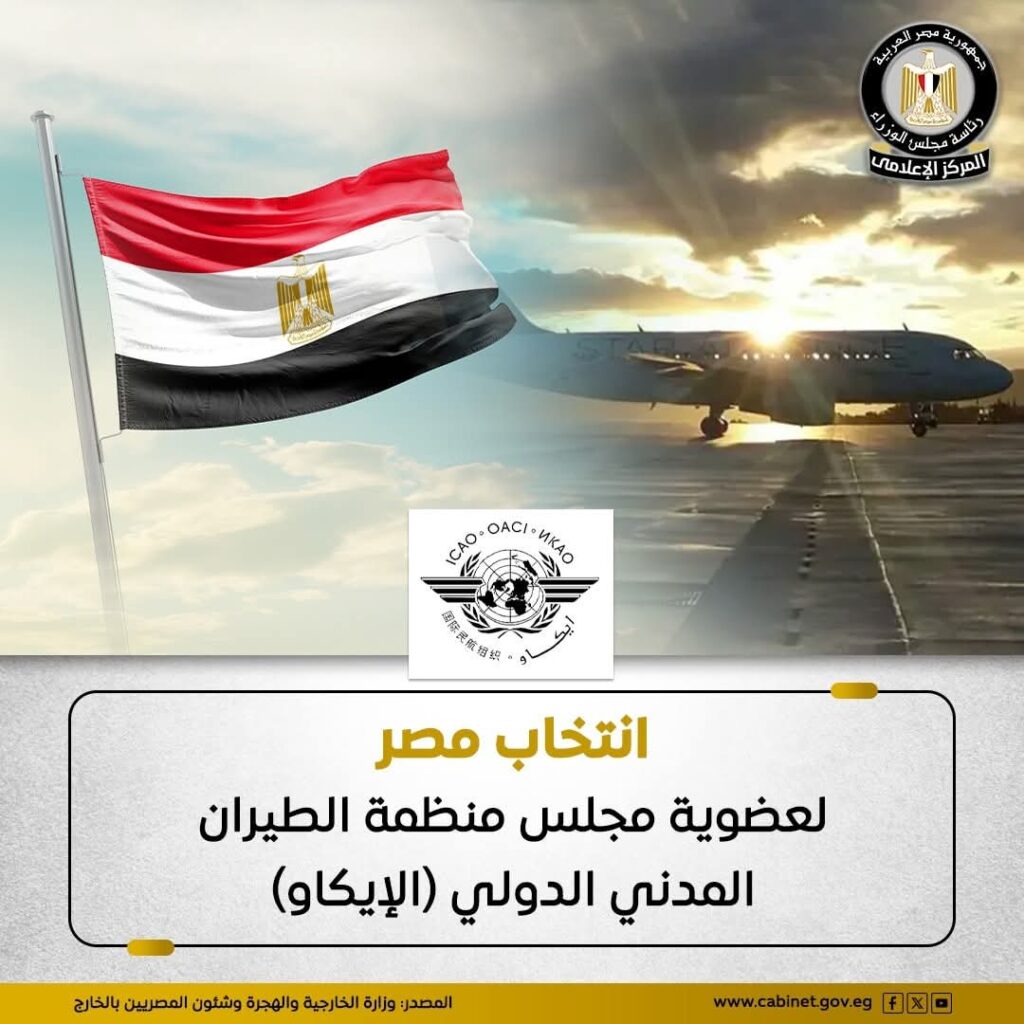 مصر تفوز بعضوية مجلس منظمة الطيران المدني الدولي عن الفئة الثانية.