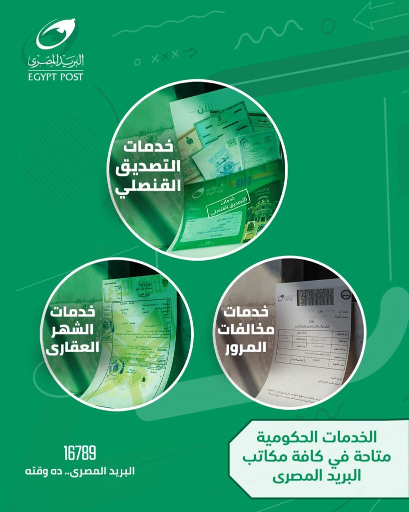 وأوضح البريد المصري أن المواطنين يمكنهم الآن إنهاء العديد من الخدمات الحكومية من أقرب مكتب بريد، ومن بينها خدمات التصديق القنصلي، ومخالفات المرور، وخدمات الشهر العقاري، بالإضافة إلى عدد من الخدمات الأخرى التي تُقدم في إطار التعاون مع مختلف الجهات الحكومية.