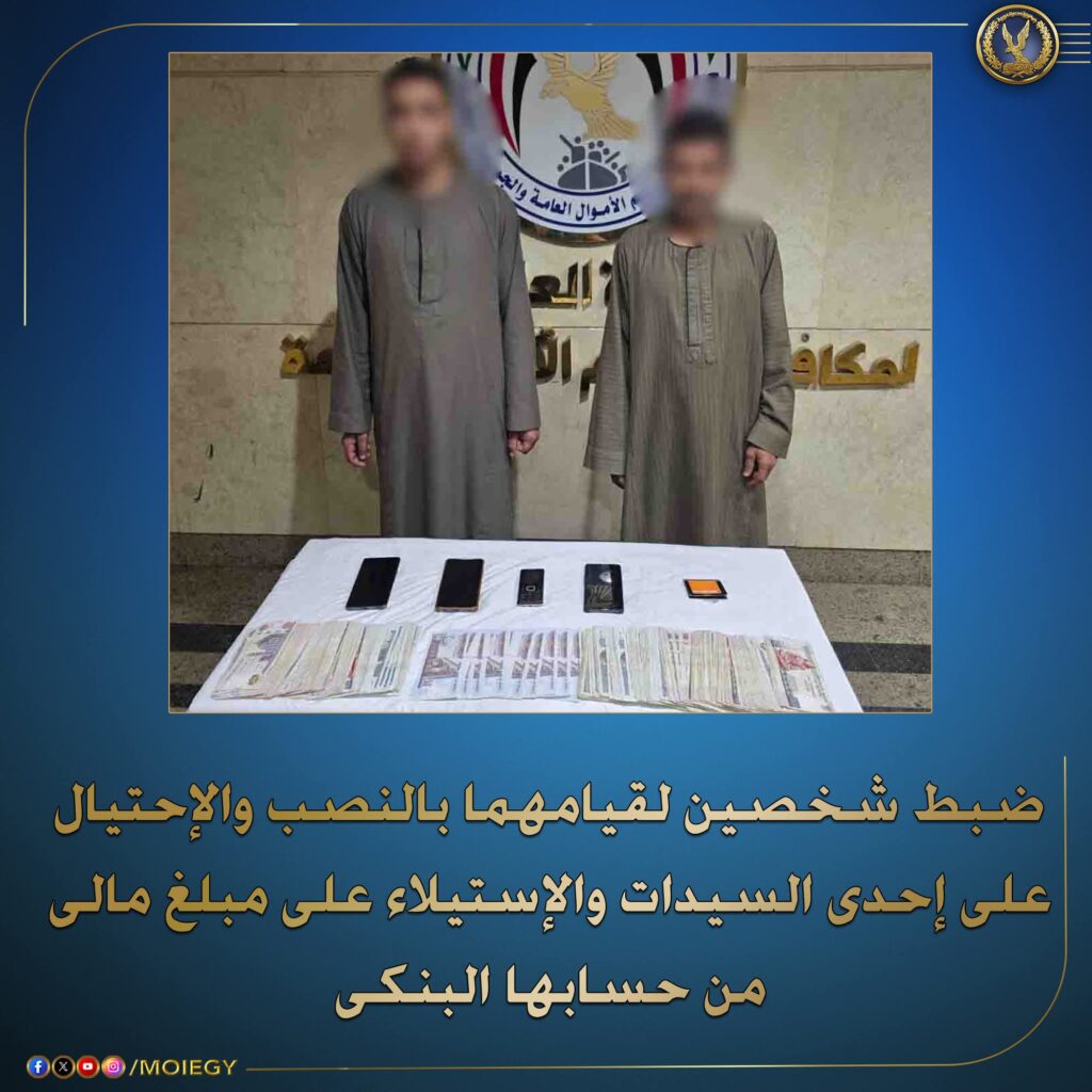 وبتفتيشهما، عُثر بحوزتهما على مبلغ مالي من متحصلات نشاطهما الإجرامي، و4 هواتف محمولة، تبيّن من فحصها احتواؤها على دلائل تؤكد تورطهما في عمليات نصب واحتيال إلكتروني.