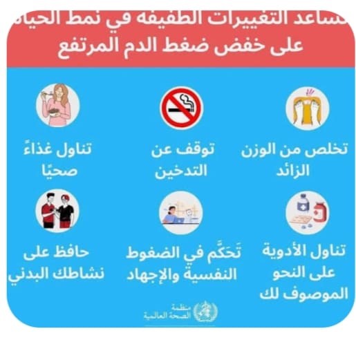 ♦· تغيير نمط الحياة (وهو الأساس): تقليل الملح، خفض الوزن، الرياضة المنتظمة، الإقلاع عن التدخين، وتجنب التوتر.