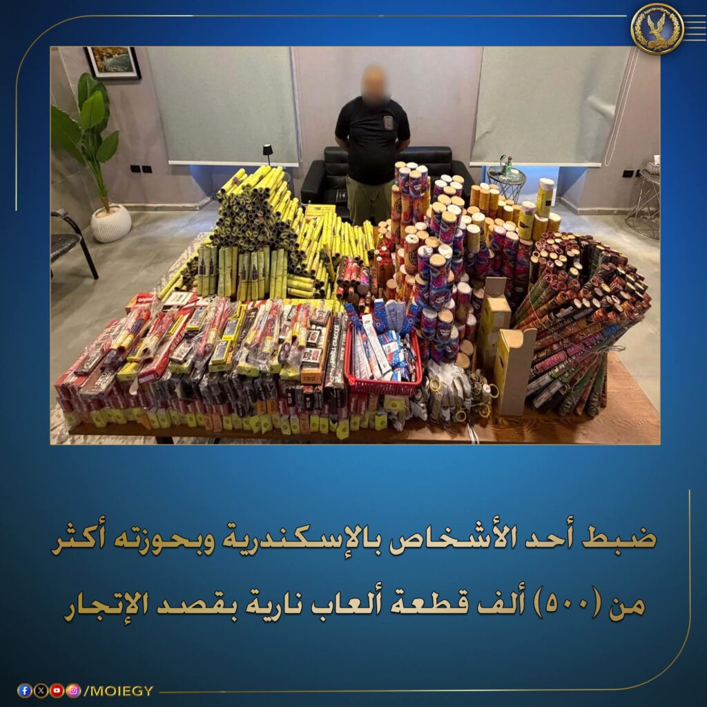 نجحت الأجهزة الأمنية بالإسكندرية، بالتنسيق مع قطاع الأمن العام، في ضبط صاحب محل – له معلومات جنائية ومسجّل بدائرة قسم شرطة اللبان – لقيامه بجلب كميات ضخمة من الألعاب النارية بقصد الاتجار.