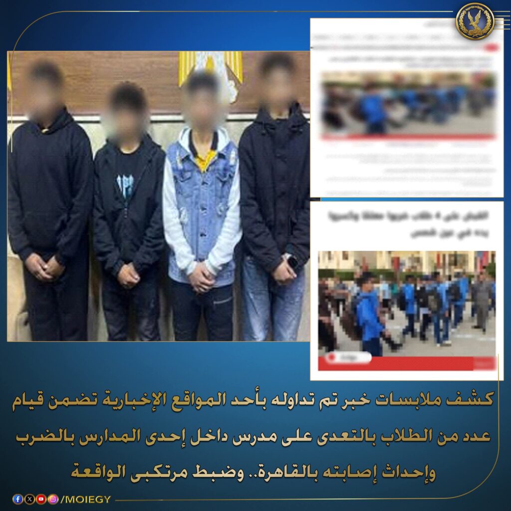 فى إطار كشف ملابسات خبر تم تداوله بأحد المواقع الإخبارية تضمن قيام عدد من الطلاب بالتعدى على مدرس داخل إحدى المدارس بالضرب وإحداث إصابته بالقاهرة.