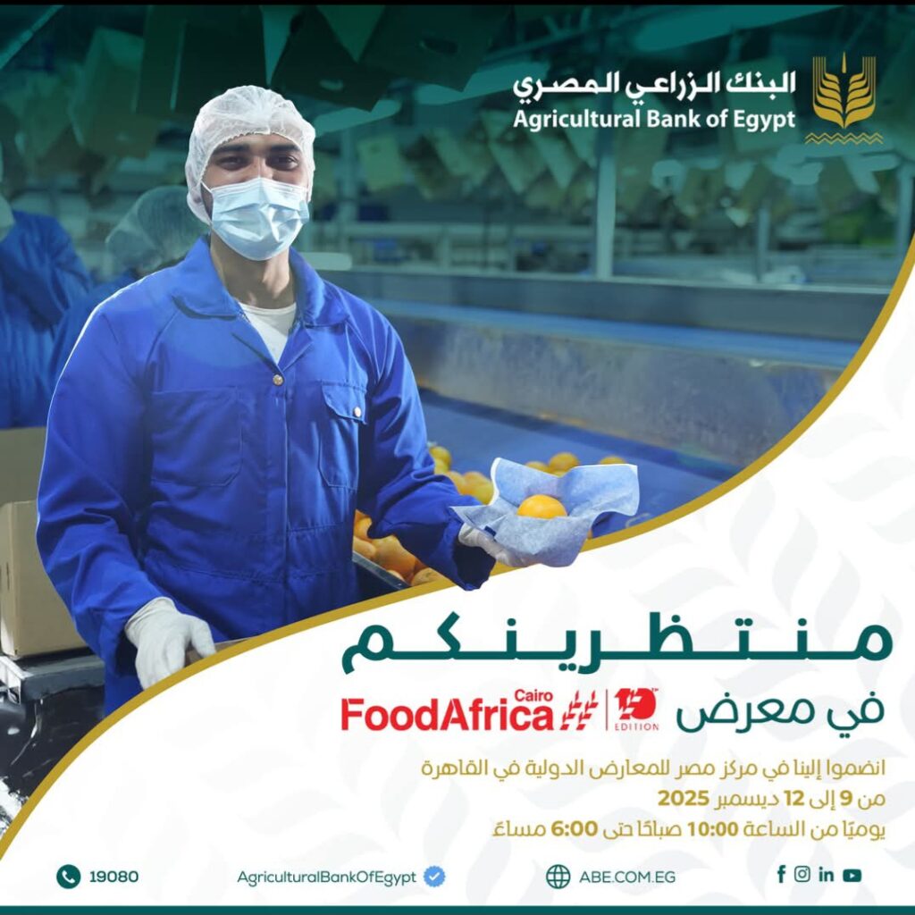 البنك الزراعي المصري يشارك في معرض “فوود أفريكا 2025” لدعم قطاعي الغذاء والتصنيع الزراعي.