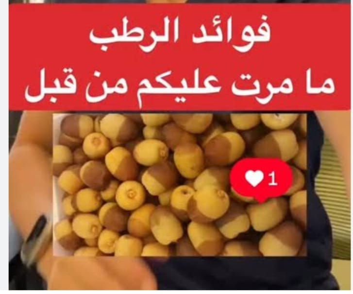 🟥 فوائد البلح الرطب. ♦1. خفض نسبة الكولسترول بالدم والوقاية من تصلب الشرايين لاحتوائه على البكتين.