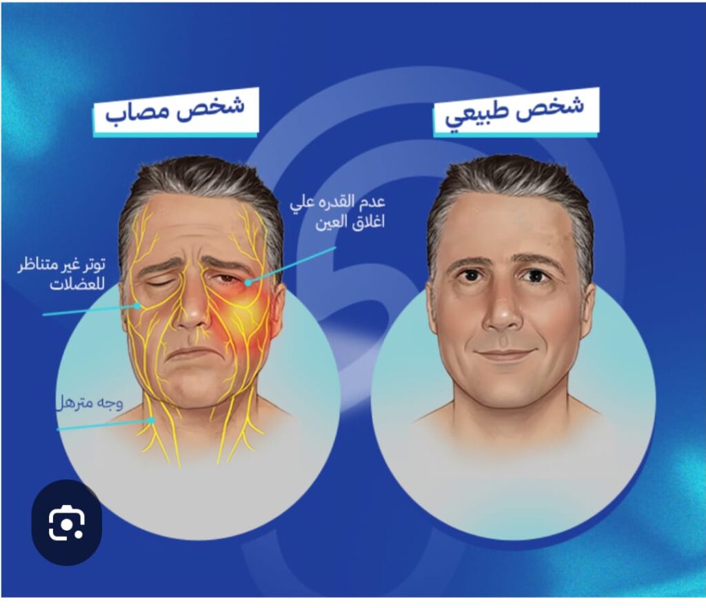 ♦العلاج الطبيعي: تمارين الوجه والتحفيز الكهربائي ضروريان لاستعادة حركة العضلات.