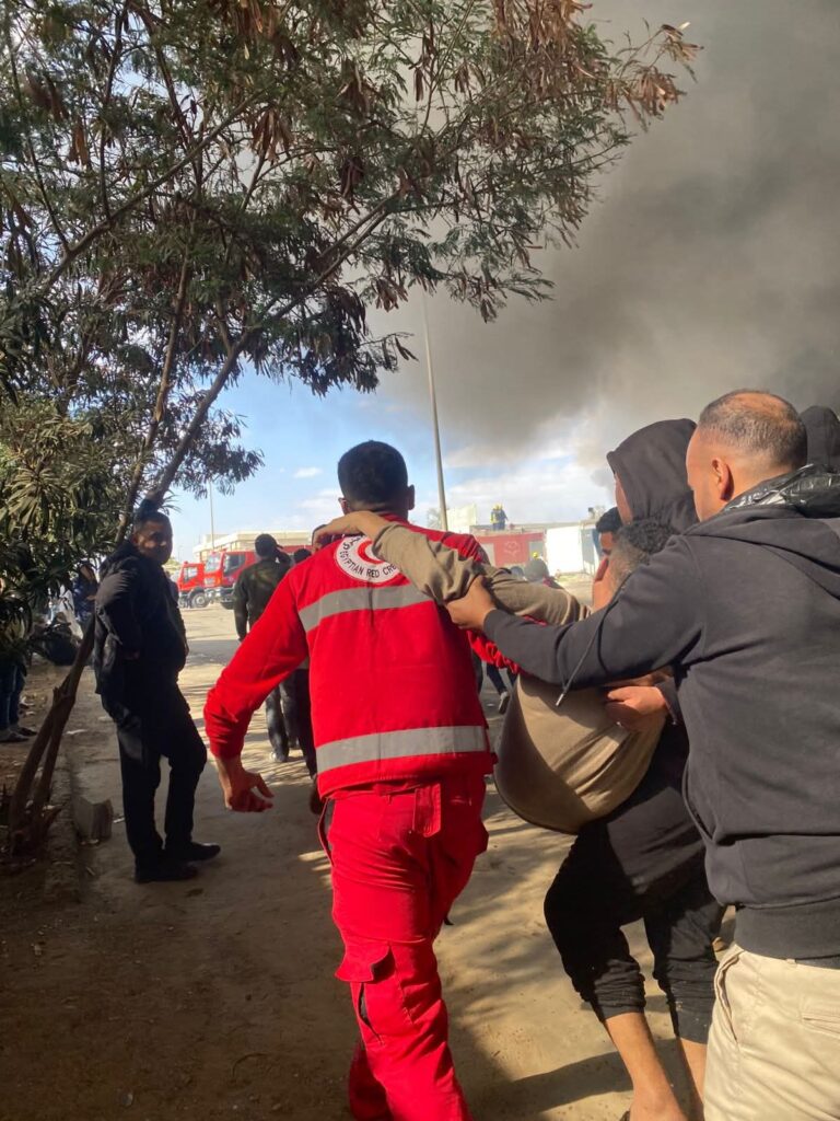 الهلال الأحمر المصري يساند جهود الحماية المدنية والإسعاف في حريق مصنع ملابس أكتوبر.