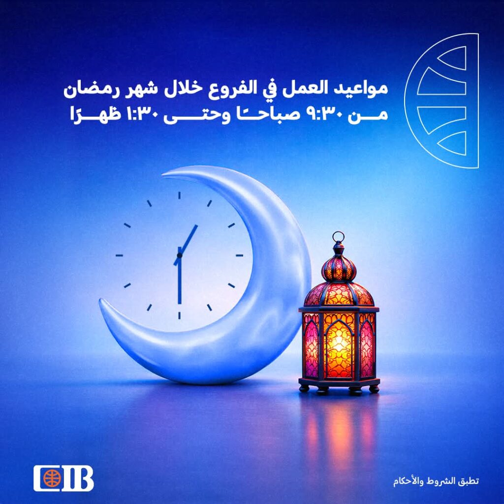 CIB يعلن مواعيد العمل خلال شهر رمضان المبارك.