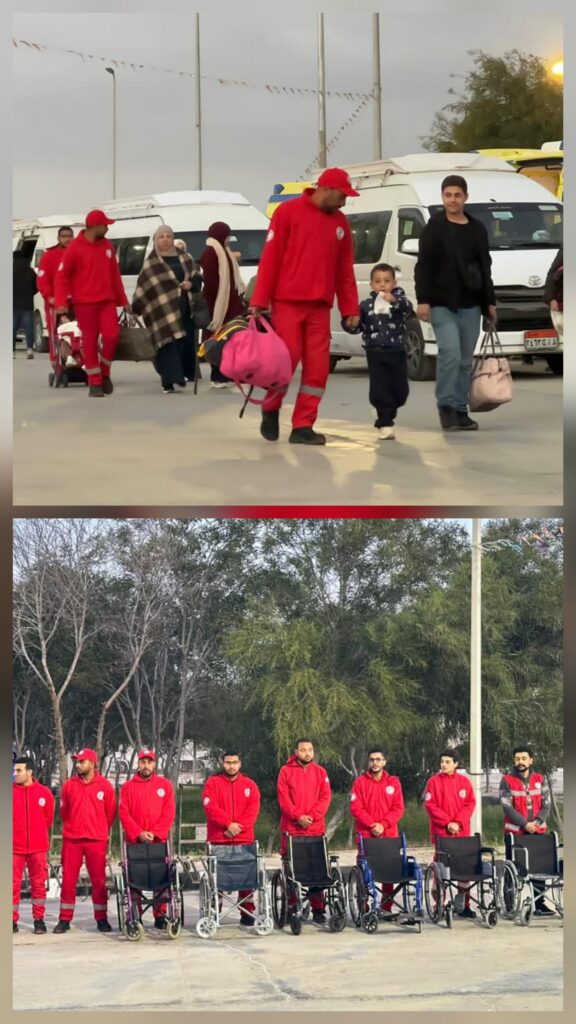 وفي سياق متصل، يواصل الهلال الأحمر المصري على معبر رفح من الجانب المصري، جهوده الإنسانية في استقبال وتوديع الدفعة الـ 16 من الجرحى والمرضى والمصابين الفلسطينيين الوافدين والمغادرين، ومرافقتهم في إنهاء إجراءات العبور.