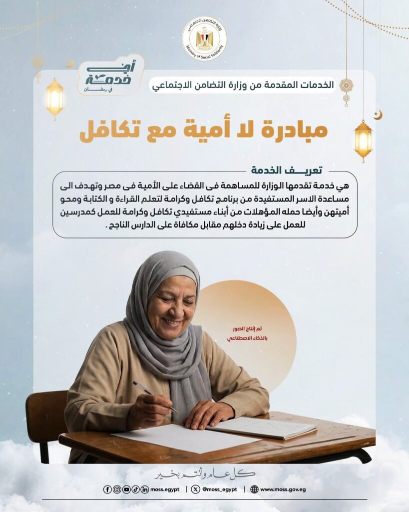 تأتي مبادرة “لا أمية مع تكافل” ضمن جهود الوزارة لربط الدعم النقدي المشروط بتمكين الأسر المستفيدة من برنامج تكافل وكرامة، من خلال تشجيع محو الأمية وتعليم الكبار.