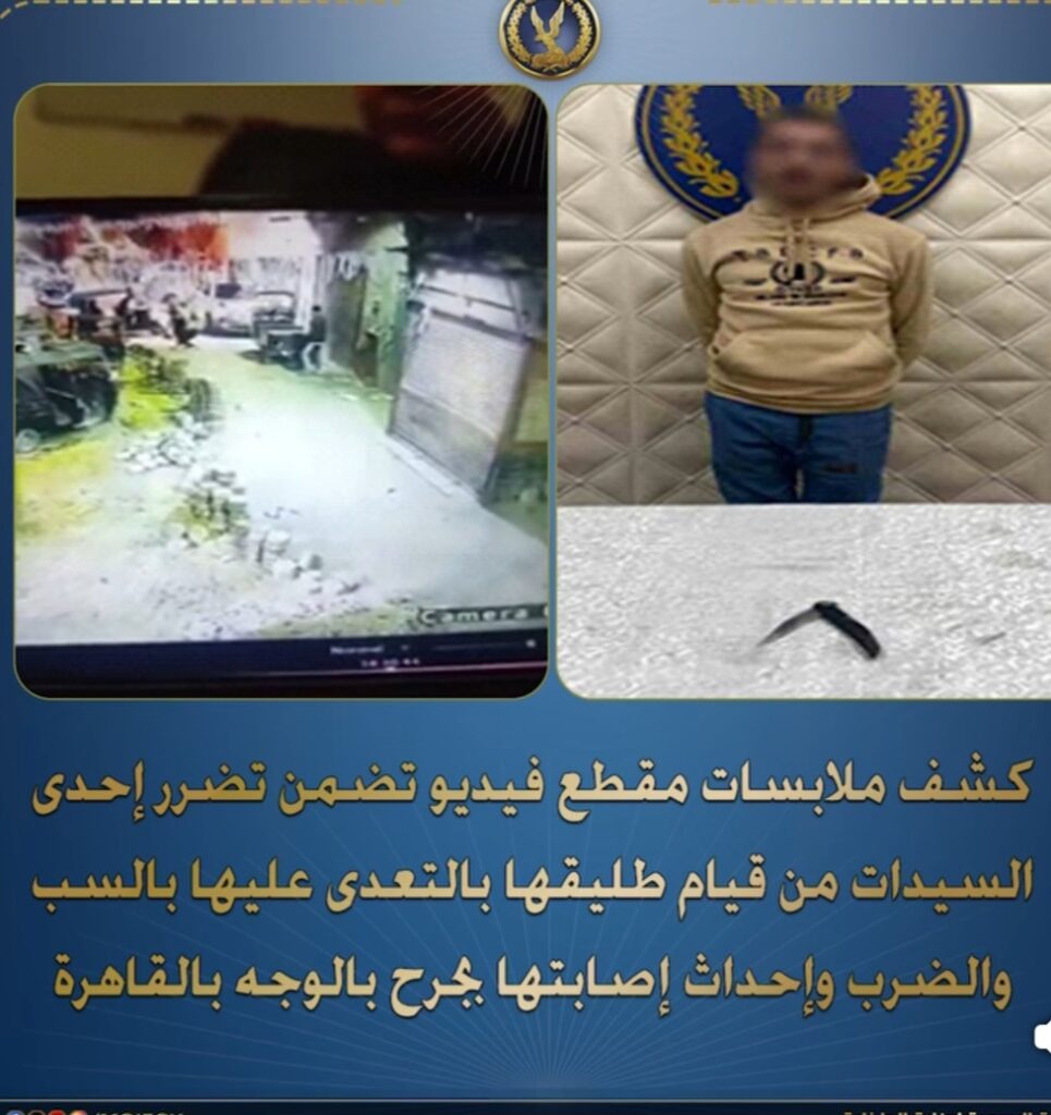في إطار جهود أجهزة الأمن لكشف ملابسات مقطع فيديو تم تداوله عبر أحد المواقع الإخبارية على مواقع التواصل الاجتماعي، تضمن تضرر إحدى السيدات من قيام طليقها بالتعدي عليها بالسب والضرب وإحداث إصابتها بجرح في الوجه بدائرة قسم شرطة السيدة زينب بـالقاهرة، تمكنت الأجهزة الأمنية من تحديد وضبط مرتكب الواقعة.