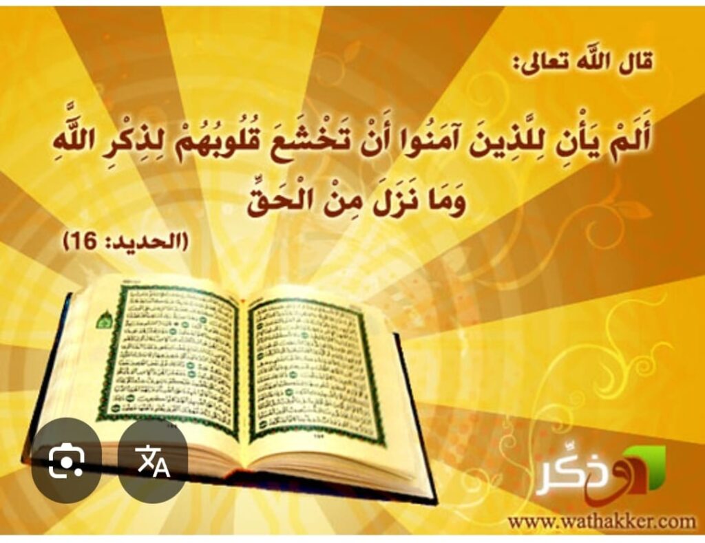 ألم يأنِ للذين آمنوا أن تخشع قلوبهم لذكر الله”.