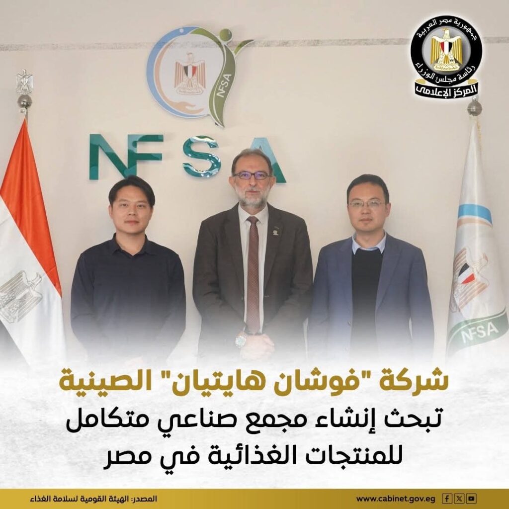 استقبلت الهيئة القومية لسلامة الغذاء وفدًا من شركة Foshan Haitian Flavoring & Food Co., Ltd.، إحدى كبرى الشركات العالمية المتخصصة في صناعة الصلصات والتتبيلات والمنتجات الغذائية، وذلك خلال زيارة رسمية إلى مصر لبحث فرص تأسيس مجمع صناعي متكامل لإنتاج منتجات الشركة.