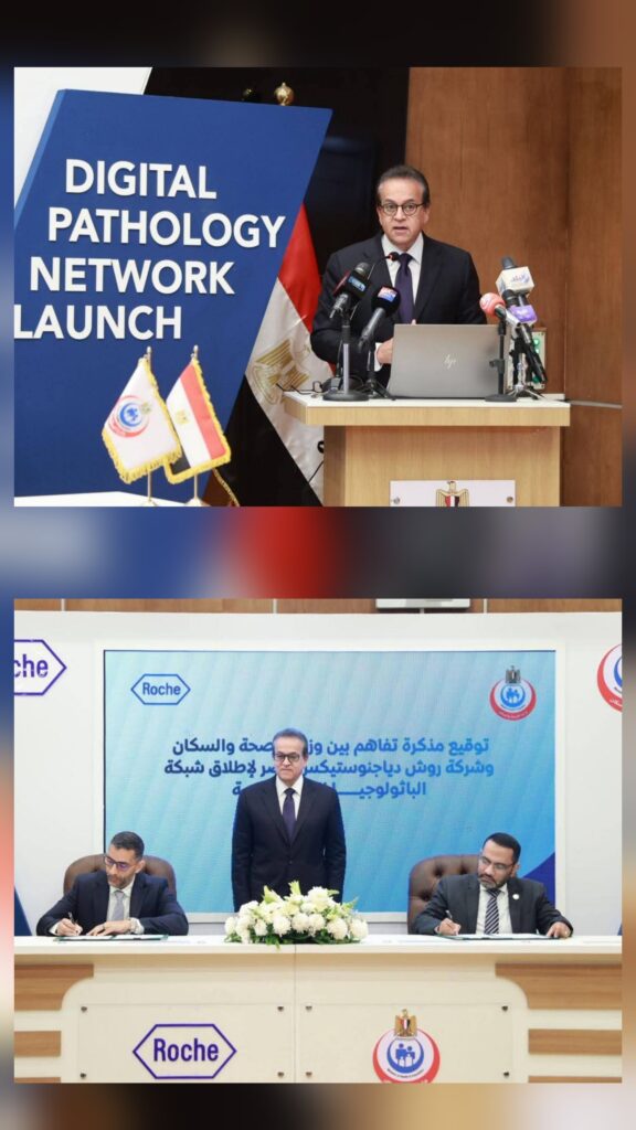 شهد الدكتور خالد عبدالغفار، وزير الصحة والسكان، توقيع مذكرة تفاهم بين وزارة الصحة والسكان وشركة Roche للحلول التشخيصية، لإطلاق الشبكة الوطنية للباثولوجيا الرقمية في مصر، وذلك بالمركز المصري للتحكم في الأمراض (EGYCDC)، بهدف تعزيز القدرات التشخيصية الوطنية وتسريع تشخيص الأورام ورفع دقة النتائج داخل مستشفيات ووحدات الرعاية الصحية.