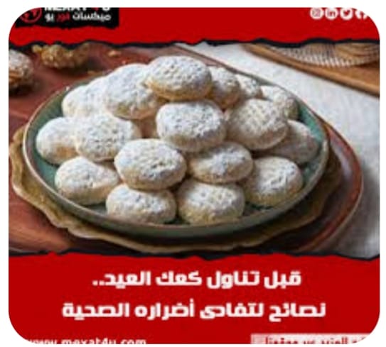حلويات وكعك العيد هي طقوس احتفالية غنية بالدهون والسكريات (كعكة واحدة =200-250سعر حرارى). بينما توفر طاقة سريعة، فإن الإفراط فيها يسبب زيادة الوزن، اضطرابات هضمية، وارتفاع السكر. ينصح بتناول