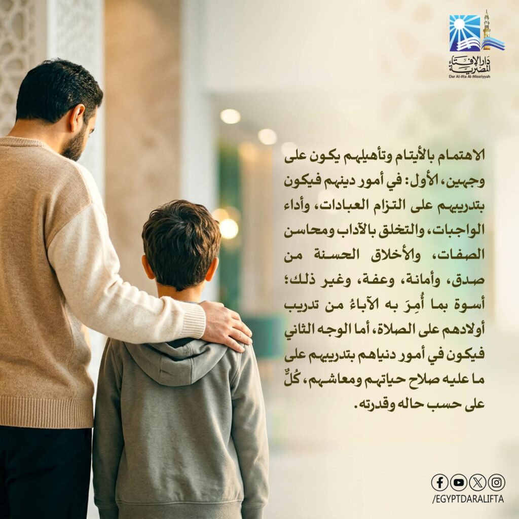 دار الإفتاء المصرية تؤكد أهمية تأهيل الأيتام دينياً ودنيوياً.