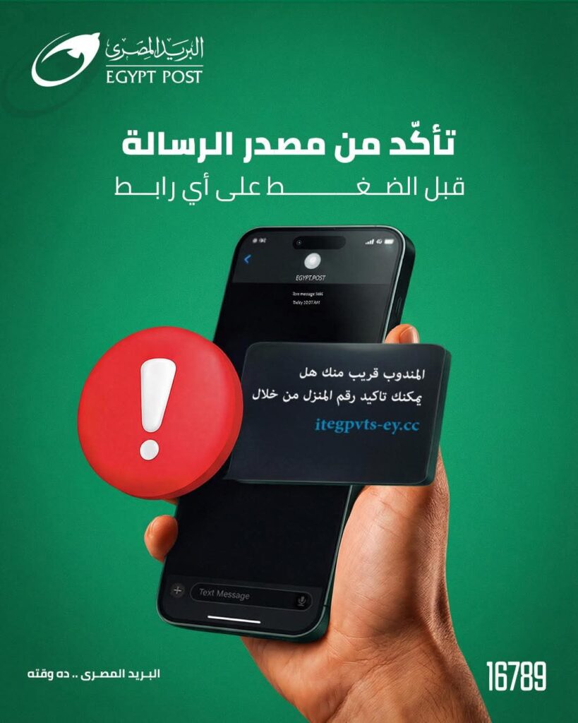 ناشدت الهيئة القومية للبريد (البريد المصري) جميع عملائها بضرورة توخي الحذر عند استقبال أي رسائل نصية تحتوي على روابط إلكترونية، مع التأكد من مصدر الرسالة قبل الضغط على أي رابط، وذلك في إطار جهودها لحماية بيانات العملاء وتعزيز الوعي الرقمي.
