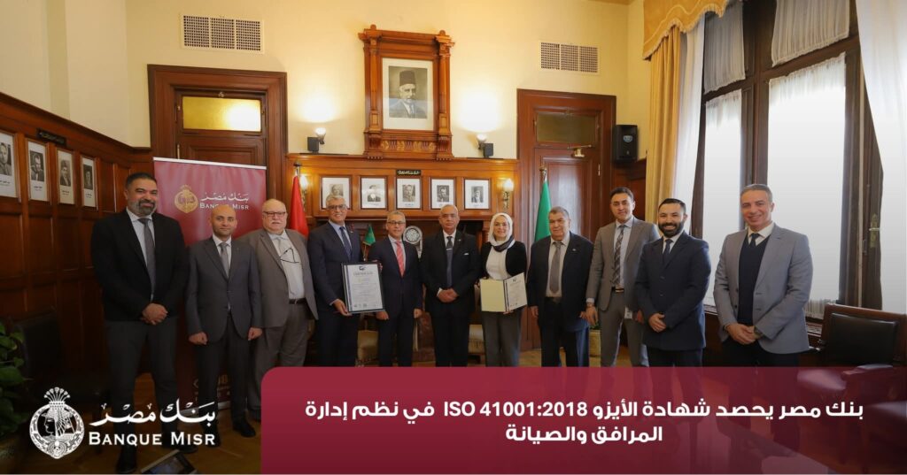 بنك مصر يحصد شهادة الأيزو ISO 41001:2018 في نظم إدارة المرافق والصيانة.